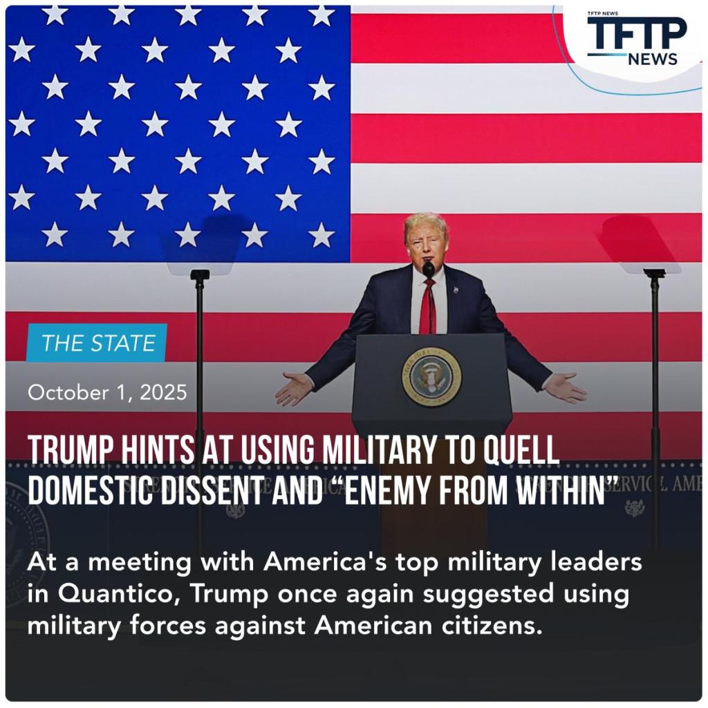 Yesterday, Donald Trump told U.S. military leaders to prepare for action at home, saying they’ll soon target the “enemy from within” — his code for progressives and other left-leaning Americans.