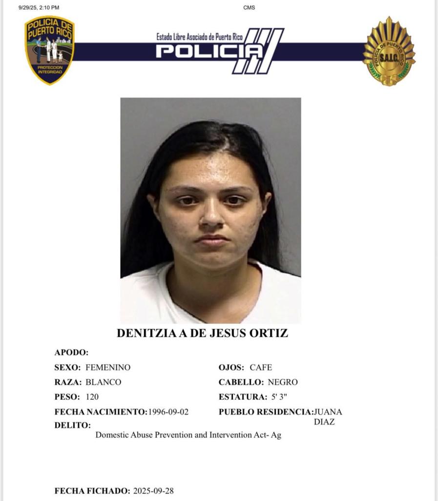 Agentes de la Policía👮♂️ de Puerto Rico,🇵🇷 adscritos a la División de Violencia Doméstica del área de Ponce, realizaron una investigación que culminó con la radicación de cargos por el artículo 3.2 d (maltrato agravado), de la Ley 54 de Violencia Doméstica, por parte de la Fiscalía, contra Denitzia A. De Jesús Ortiz de 29 años, y residente de Juana Díaz.