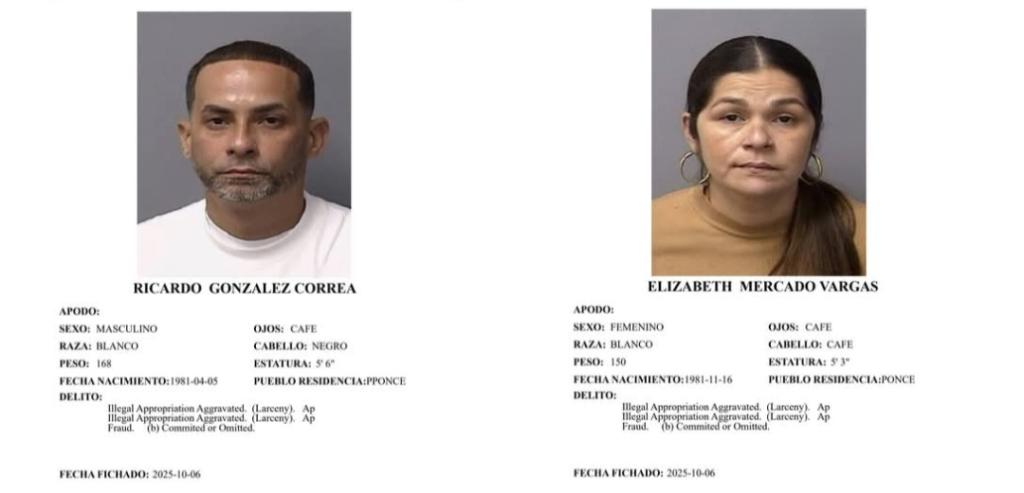 Agentes de la Policía 👮♂️de Puerto Rico, 🇵🇷adscritos a la División de Robo, Extorsiones, Delitos contra la Propiedad, Agresiones y Personas Desaparecidas de Aibonito, realizaron una investigación que culminó con la radicación de cargos, por parte de la Fiscalía, por apropiación Ilegal (artículo 182) fraude (202) falsedad ideológica (2.12) y perjurio (269) del Código Penal de Puerto Rico,🇵🇷 contra Ricardo González Correa de 44 años y Elizabeth Mercado Vargas de 44 años, ambos residentes de Ponce🇵🇷.