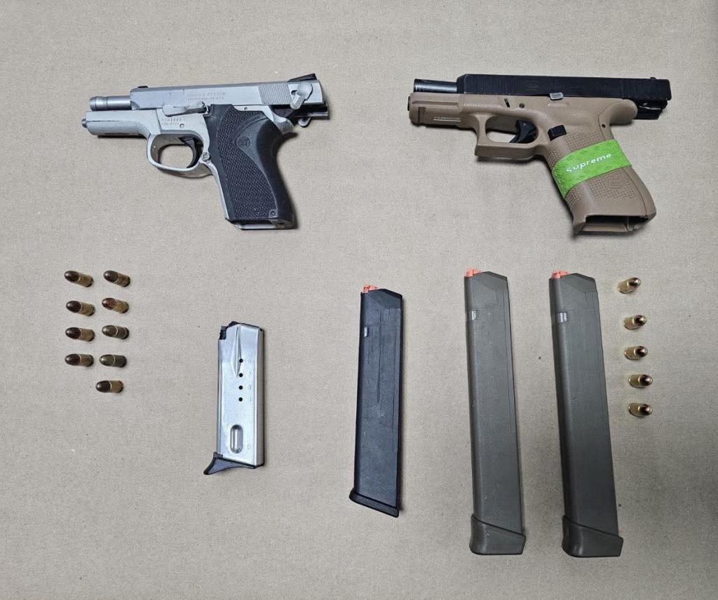 Según la información suministrada, fue arrestado Daniel Rodríguez Pérez, de 25 años, residente de Santa Isabel, a este le fue ocupado una pistola Glock 19, Gen 5, calibre 9 mm, una pistola Smith & Weason modelo 69063, cargadores extendidos y 5 municiones, una de las armas modificada para disparar automática.